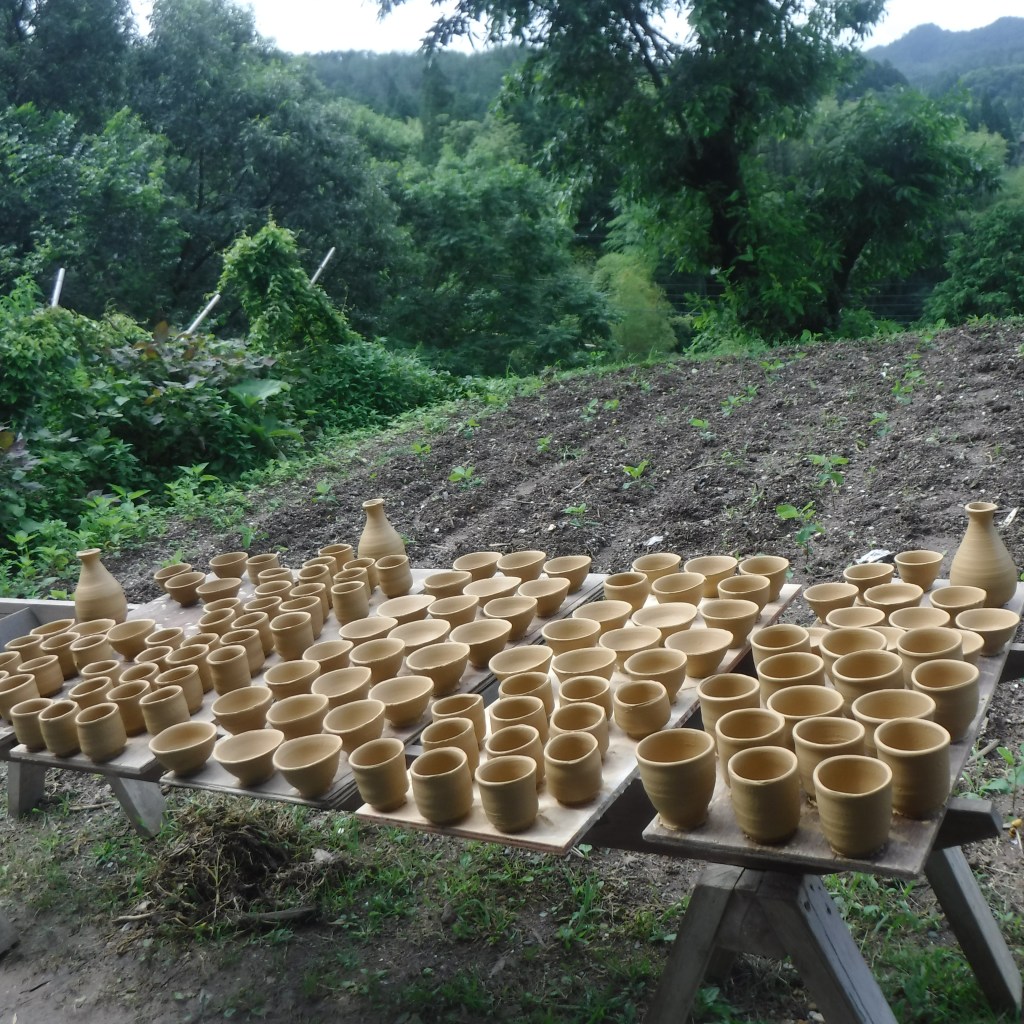 今日は珍しく曇り、昨日ロクロしたぐいのみ等を外にだしました、畑の苗は大豆です、来年の味噌、納豆になります。 土も少しでも乾かそうと外に一度に全部出したいのですが雨が降るとどうしようもないので一輪車に載せてると雨が来ると屋根の下にすぐ入れられるので ぐいのみ、杯を削りました 共有: クリックして X で共有 (新しいウィンドウで開きます) X Facebook で共有するにはクリックしてください (新しいウィンドウで開きます) Facebook いいね 読み込み中… 関連 投稿者: morishige218 焼き物製造 morishige218 のすべての投稿を表示