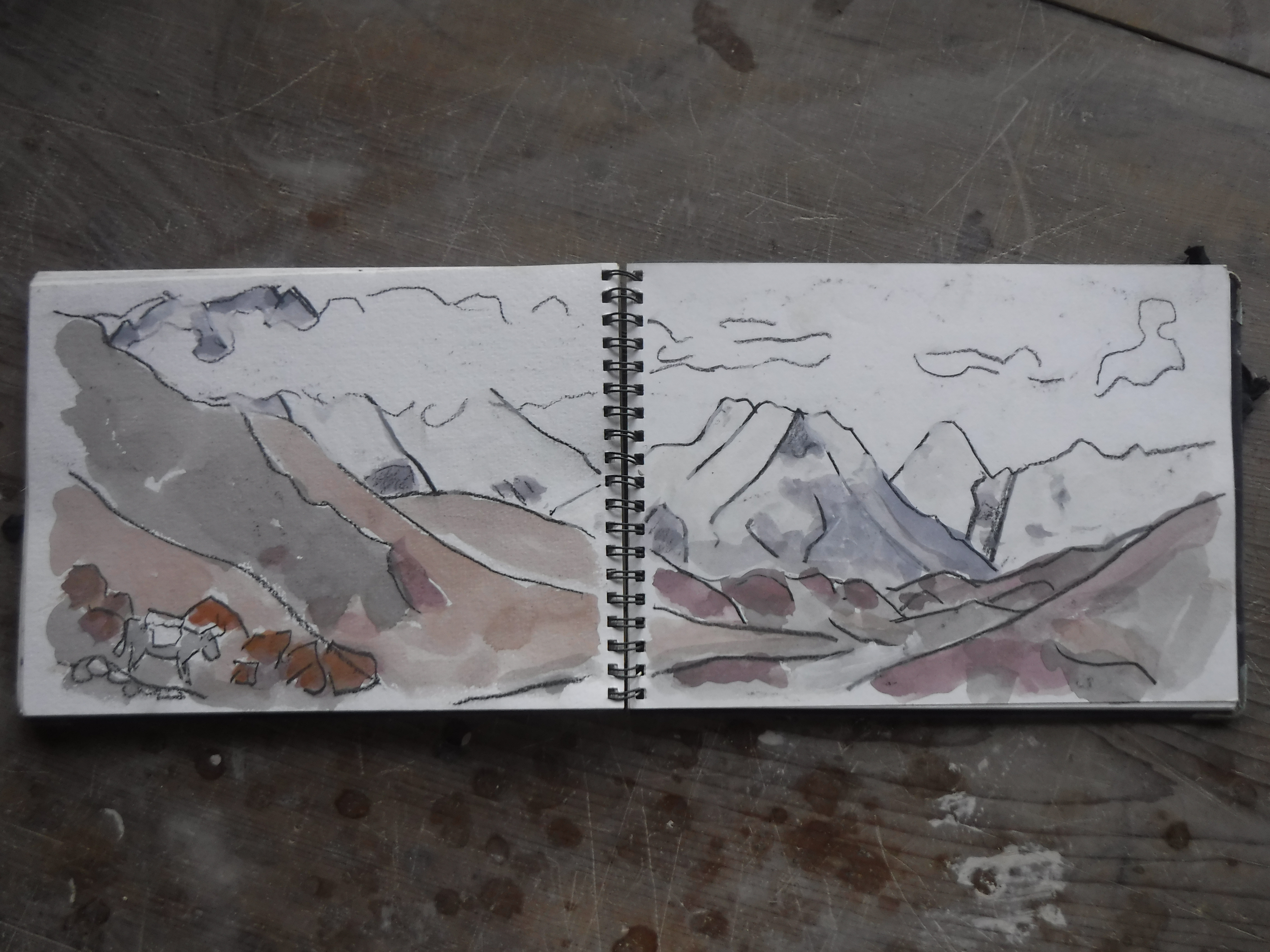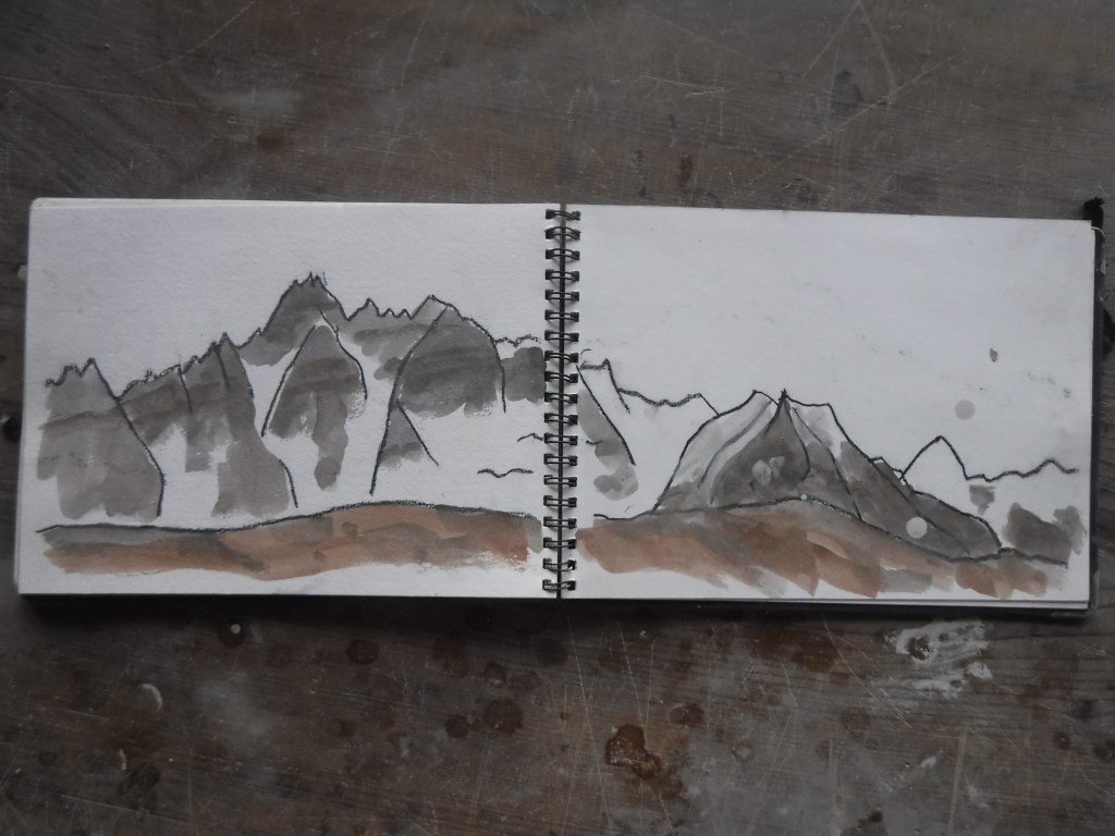 今日は医大の検診日で昼前に出かけました。朝、仕事場の整理をしていると12年前に還暦ヒマラヤ登山に行った時のスケッチが出てきました。スケッチブック一冊一杯に描いてあり、懐かしく眺めました。